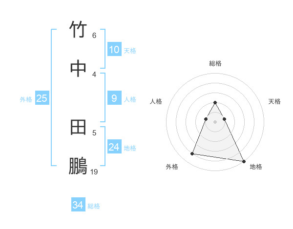 竹中 田鵬さんを姓名の画数から五運を鑑定