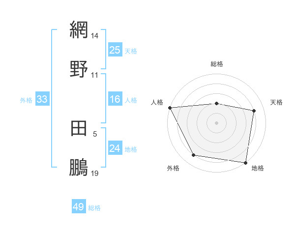 網野 田鵬さんを姓名の画数から五運を鑑定