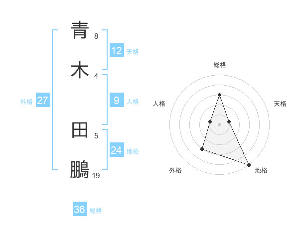 青木 田鵬さんを姓名の画数から五運を鑑定
