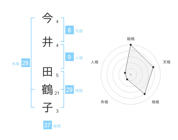今井 田鶴子さんを姓名の画数から五運を鑑定