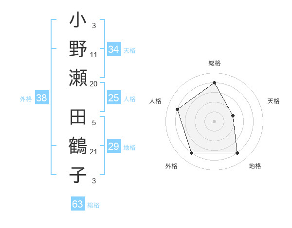 小野瀬 田鶴子さんを姓名の画数から五運を鑑定