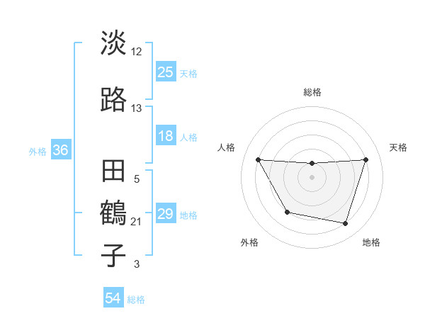 淡路 田鶴子さんの地格は29画の4点!