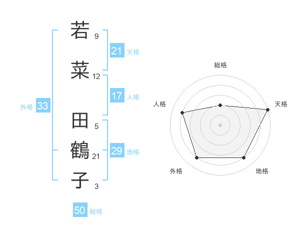 若菜 田鶴子さんを姓名の画数から五運を鑑定