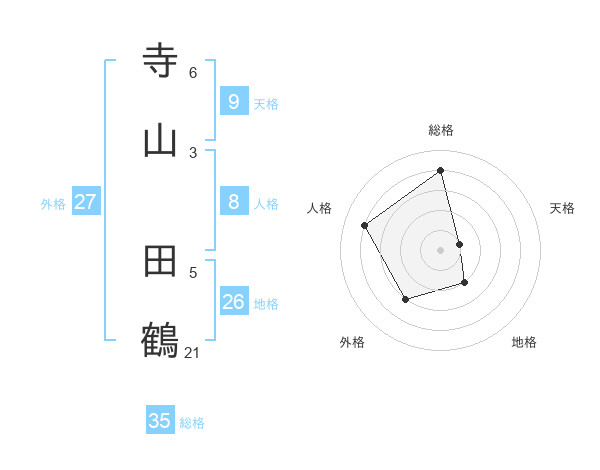 寺山 田鶴さんの総格は35画の4点!