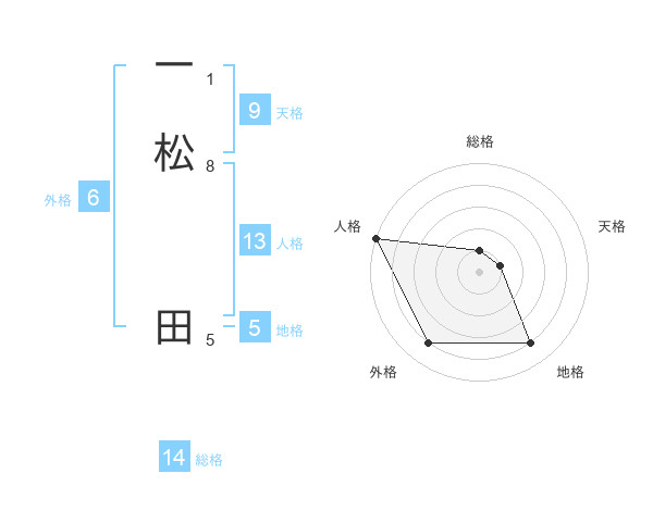 一松 田さんの総格は14画の1点!