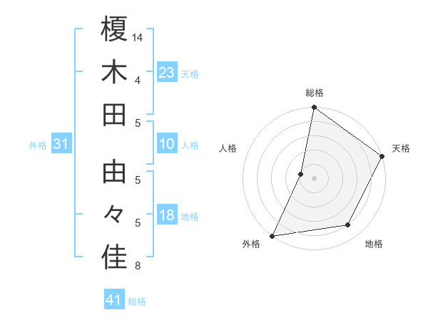 榎木田 由々佳さんの総格は41画の5点!
