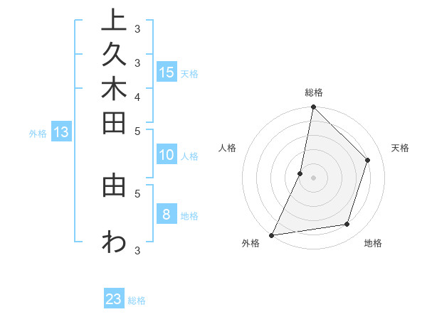 上久木田 由わさんを姓名の画数から五運を鑑定