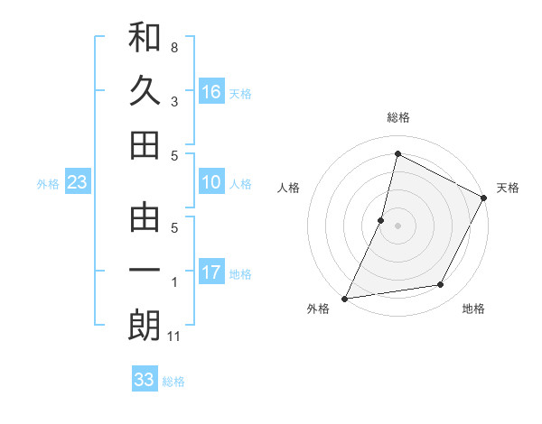 和久田 由一朗さんを姓名の画数から五運を鑑定
