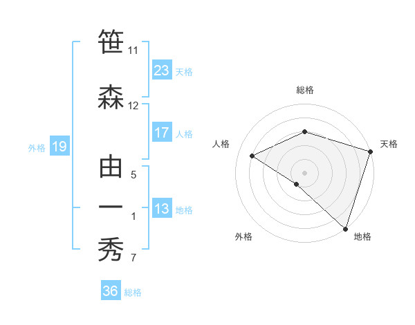 笹森 由一秀さんの総格は36画の3点!