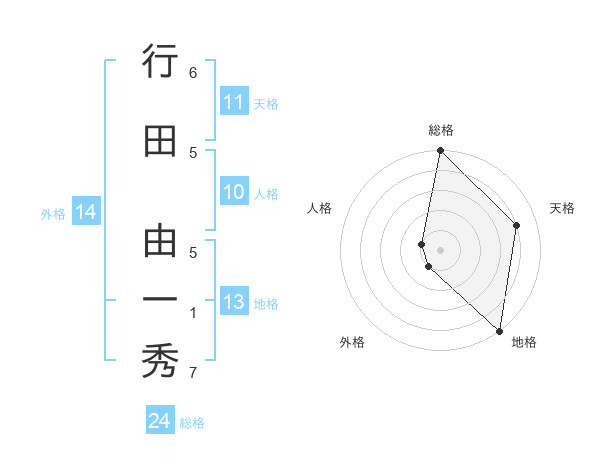 行田 由一秀さんの総格は24画の5点!