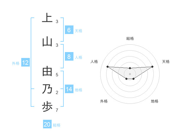 上山 由乃歩さんを姓名の画数から五運を鑑定