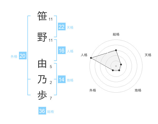 笹野 由乃歩さんの天格は22画の1点!