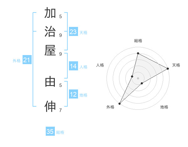 加治屋 由伸さんを姓名の画数から五運を鑑定