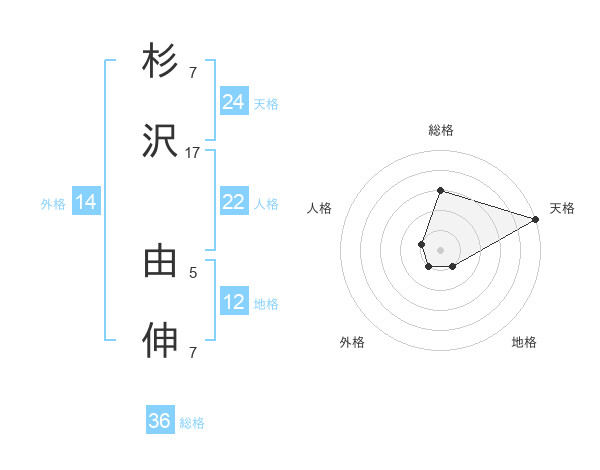 杉沢 由伸さんの天格は24画の5点