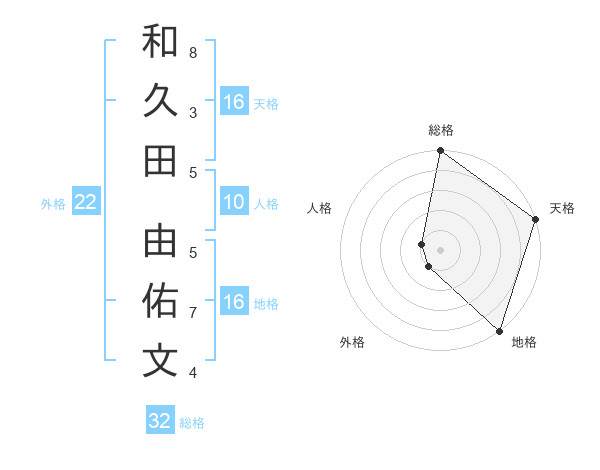 和久田 由佑文さんを姓名の画数から五運を鑑定