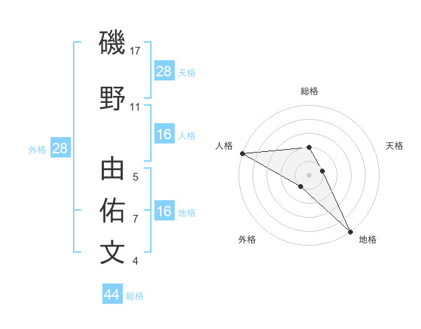 磯野 由佑文さんの総格は44画の2点!