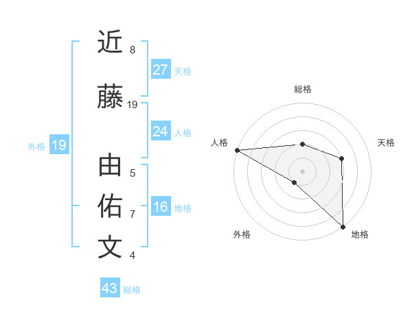 近藤 由佑文さんを姓名の画数から五運を鑑定