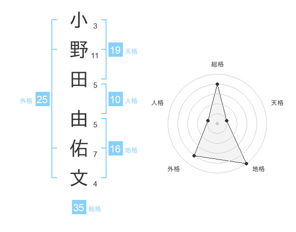 小野田 由佑文さんを姓名の画数から五運を鑑定