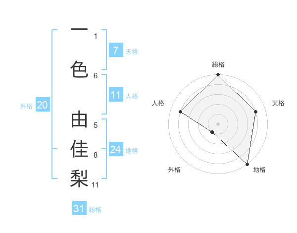 一色 由佳梨さんを姓名の画数から五運を鑑定