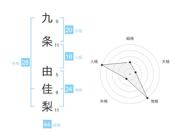 九条 由佳梨さんの地格は24画の5点!