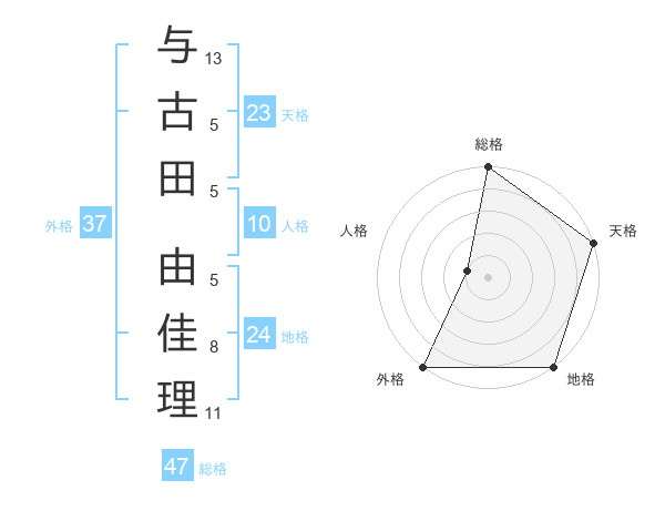 与古田 由佳理さんの総格は47画の5点!