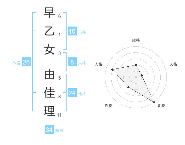 早乙女 由佳理さんの総格は34画の2点!