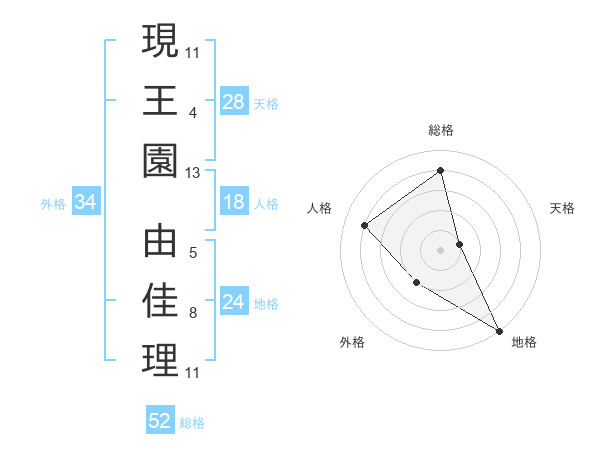 現王園 由佳理さんを姓名の画数から五運を鑑定