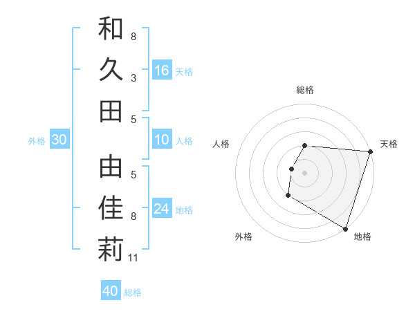 和久田 由佳莉さんを姓名の画数から五運を鑑定