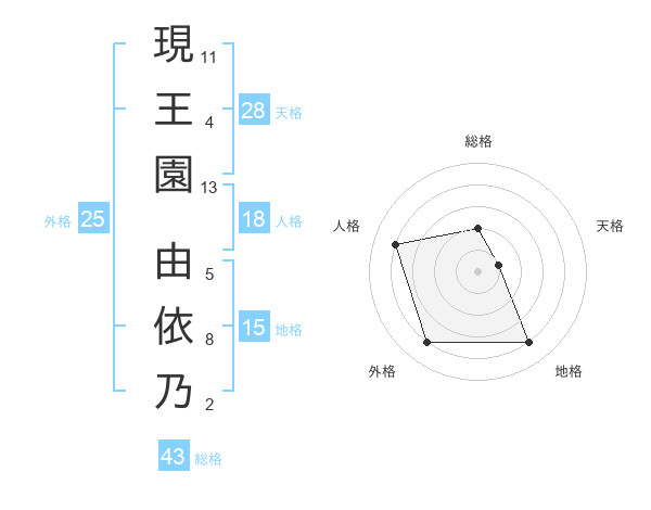 現王園 由依乃さんの外格は25画の4点!