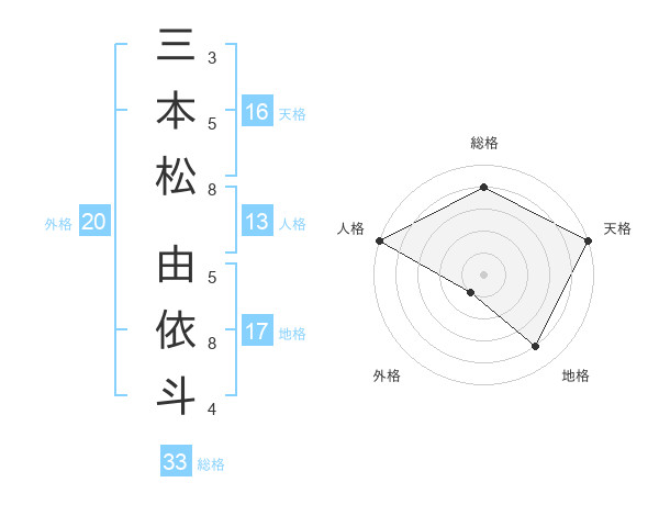三本松 由依斗さんを姓名の画数から五運を鑑定