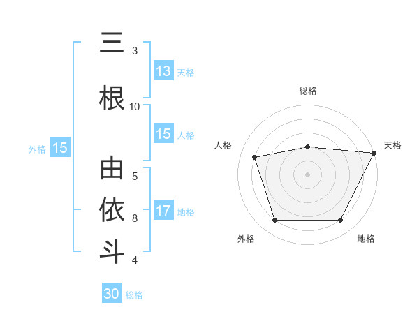 三根 由依斗さんの天格は13画の5点!
