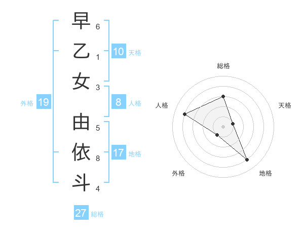 早乙女 由依斗さんを姓名の画数から五運を鑑定