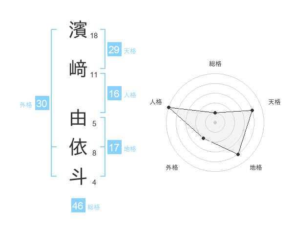 濱﨑 由依斗さんの地格は17画の4点!