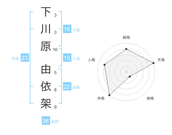 下川原 由依架さんを姓名の画数から五運を鑑定