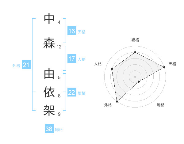 中森 由依架さんの外格は21画の5点!