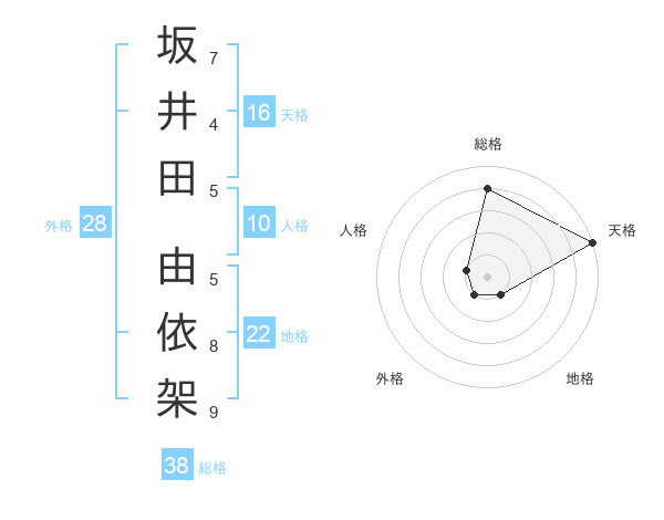 坂井田 由依架さんを姓名の画数から五運を鑑定
