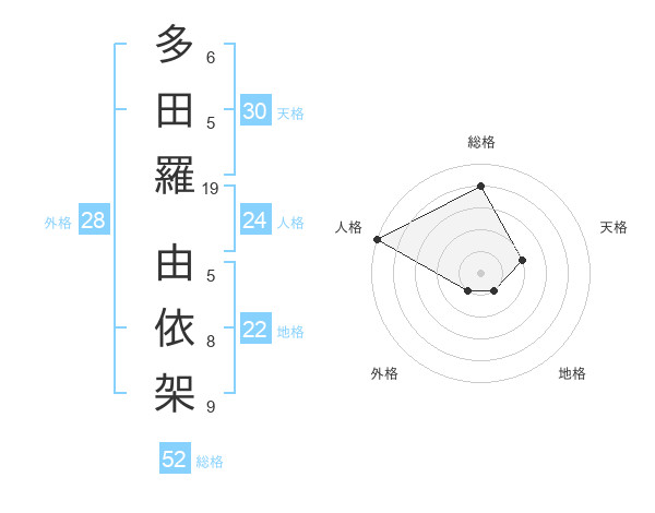 多田羅 由依架さんを姓名の画数から五運を鑑定