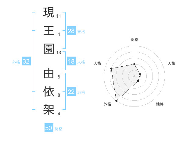 現王園 由依架さんを姓名の画数から五運を鑑定