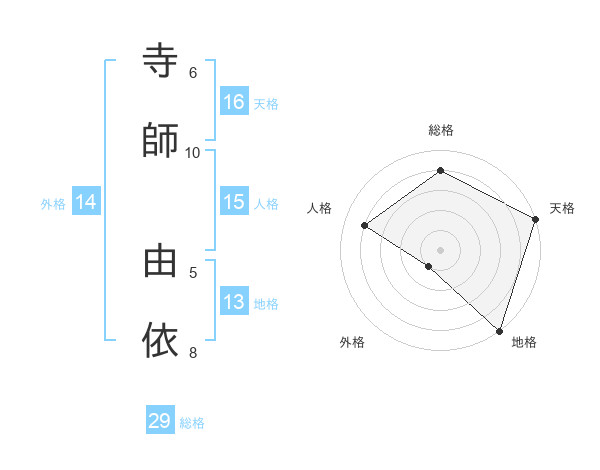 寺師 由依さんの総格は29画の4点!
