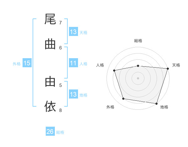 尾曲 由依さんを姓名の画数から五運を鑑定