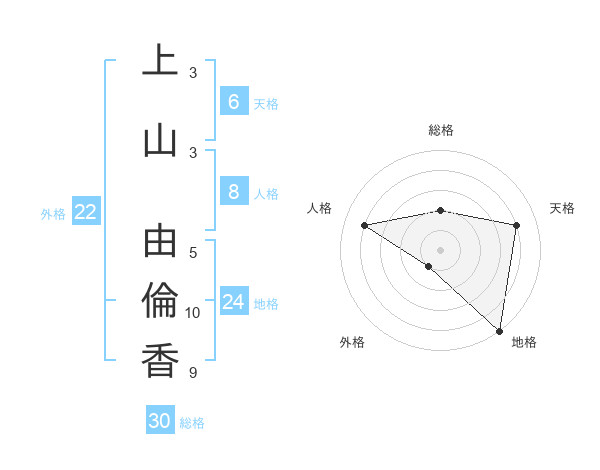 上山 由倫香さんを姓名の画数から五運を鑑定