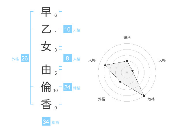 早乙女 由倫香さんを姓名の画数から五運を鑑定