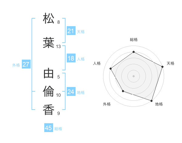 松葉 由倫香さんを姓名の画数から五運を鑑定