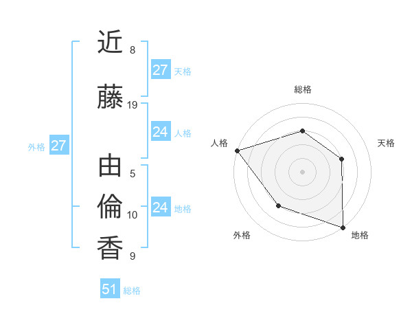 近藤 由倫香さんを姓名の画数から五運を鑑定