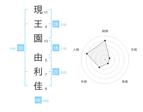 現王園 由利佳さんを姓名の画数から五運を鑑定