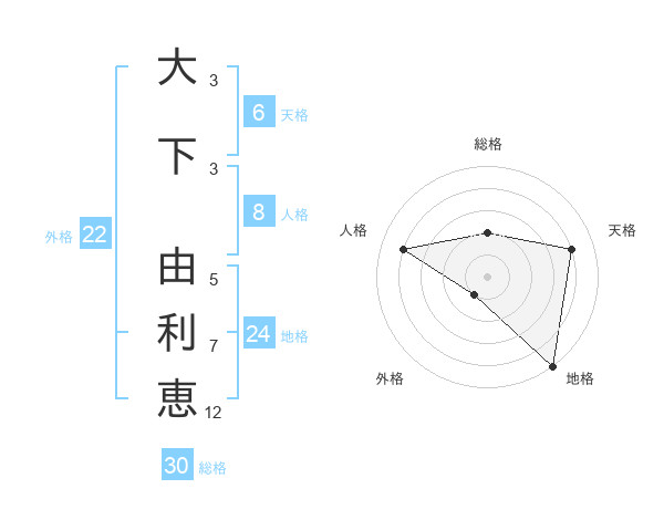 大下 由利恵さんを姓名の画数から五運を鑑定
