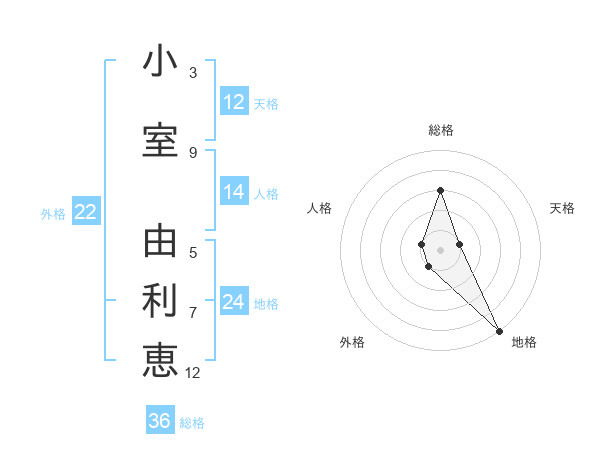小室 由利恵さんを姓名の画数から五運を鑑定