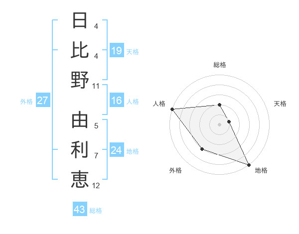 日比野 由利恵さんを姓名の画数から五運を鑑定