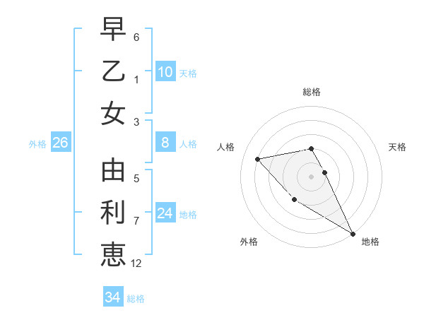 早乙女 由利恵さんを姓名の画数から五運を鑑定