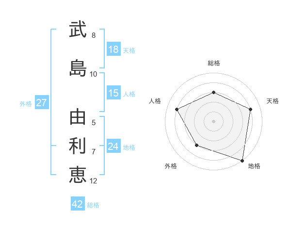 武島 由利恵さんを姓名の画数から五運を鑑定